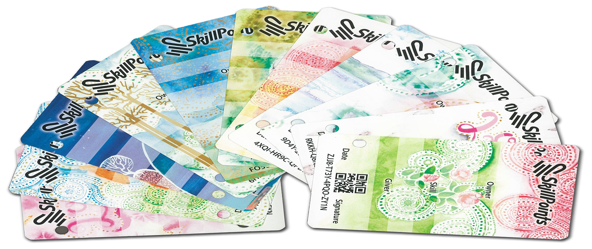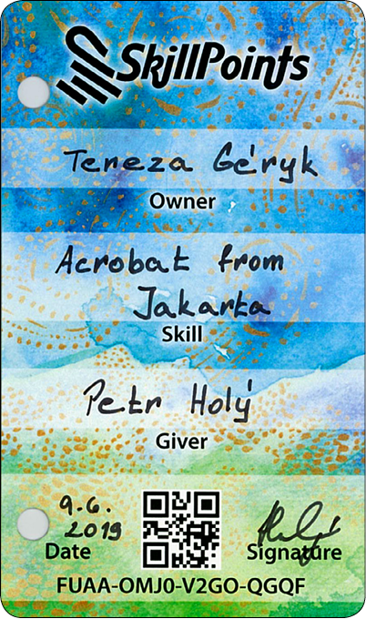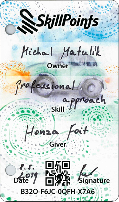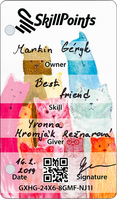 Die Karten werden aus speziellem Material hergestellt, das man nicht anfeuchten oder zerreißen kann. Du kannst diese auf dem Web oder mithilfe der mobilen Applikation SkillApp registrieren. Dank dessen erhältst Du einen Überblick über alle Karten, die Du verschenkt oder erhalten hast. In der Applikation SkillApp erhältst Du Deine Karten auch in elektronischer Form, damit Du diese mit Deiner Familie und Freunden teilen kannst.
